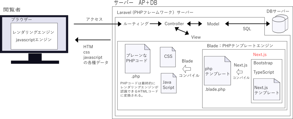 Next.js(React)を主にして、データの処理はLaravelで行う構成