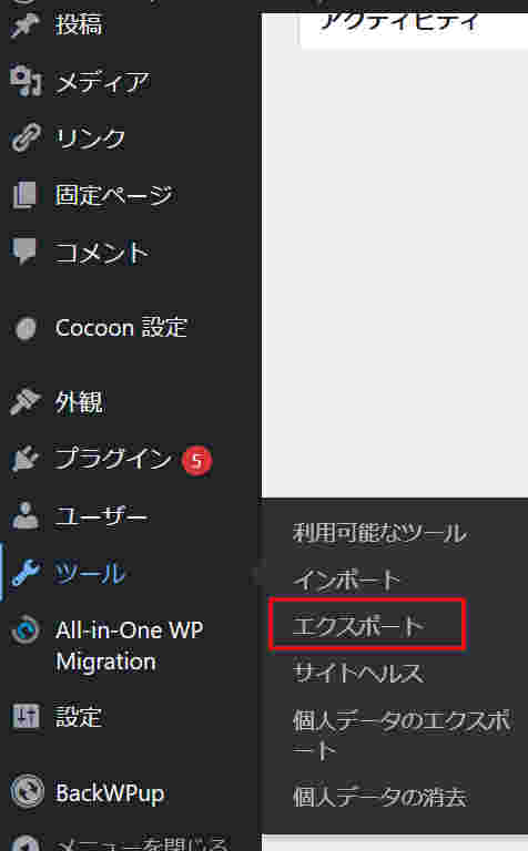 WordPressによる標準のエクスポートで、作成した投稿を別ドメインに移動させる。