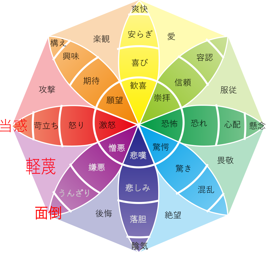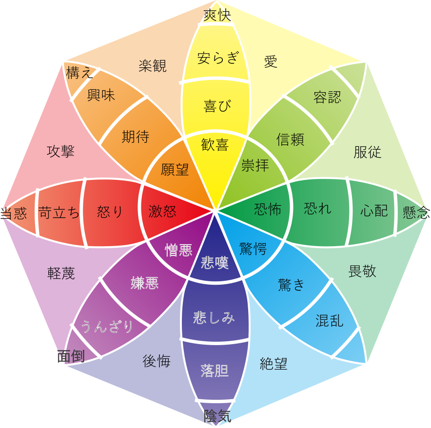 心理学者ロバート・プルチック (Robert Plutchik)が感情の分類を体系化しています。