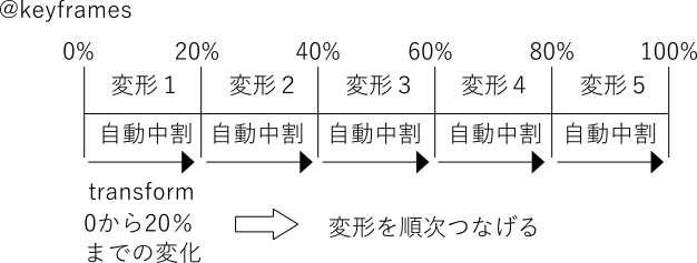 つまり、必要な数の設定(transform)を数珠つなぎにつなげて、動作させる事でアニメーション