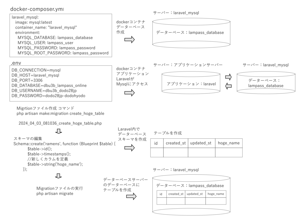 このデーターベースをLravelに関連つける。その設定を行うのが、Laravelのプロジェクト